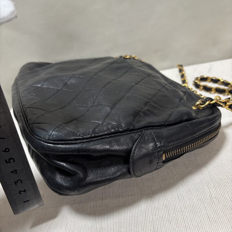 1円~ CHANEL シャネル マトラッセ チェーンショルダーバッグ ヴィンテージ ラムスキン ブラック ファスナー IW603AB07CHNRND