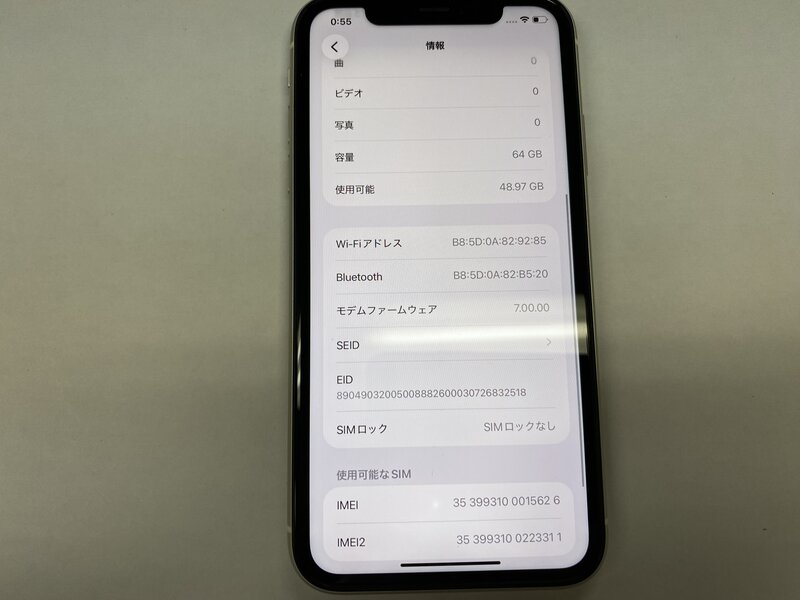 EY257 SIMフリー iPhone11 ホワイト 64GB