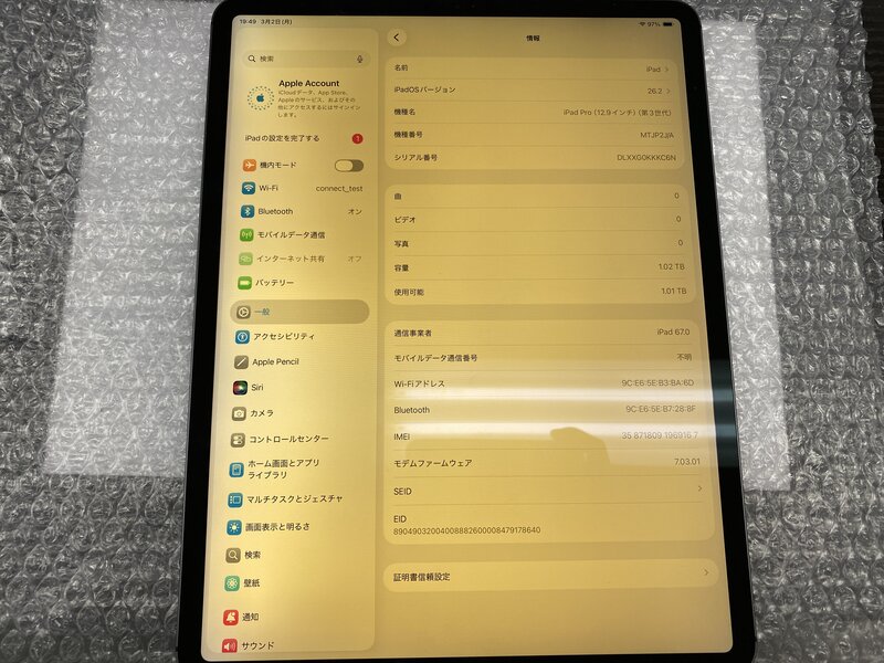 アクティベーションロック・・・OFF 液晶強い黄ばみ・光漏れ