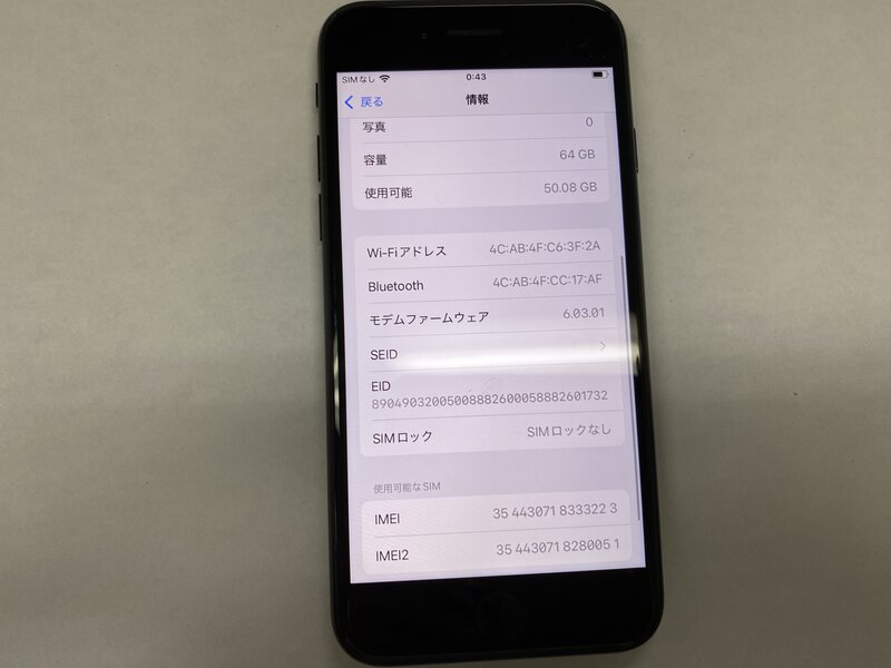 EY482 SIMフリー iPhoneSE 第2世代 ブラック 64GB