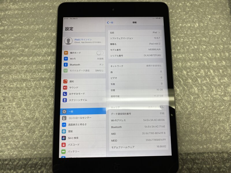 アクティベーションロック・・・OFF バッテリー劣化(バッテリー最大容量:23%)