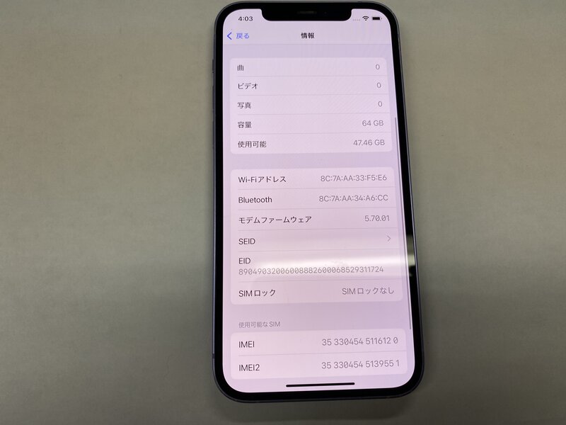 EY769 SIMフリー iPhone12 パープル 64GB