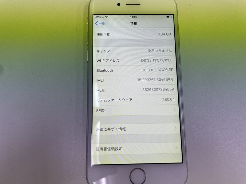 MK202 au iPhone6 16GB シルバー 判定〇