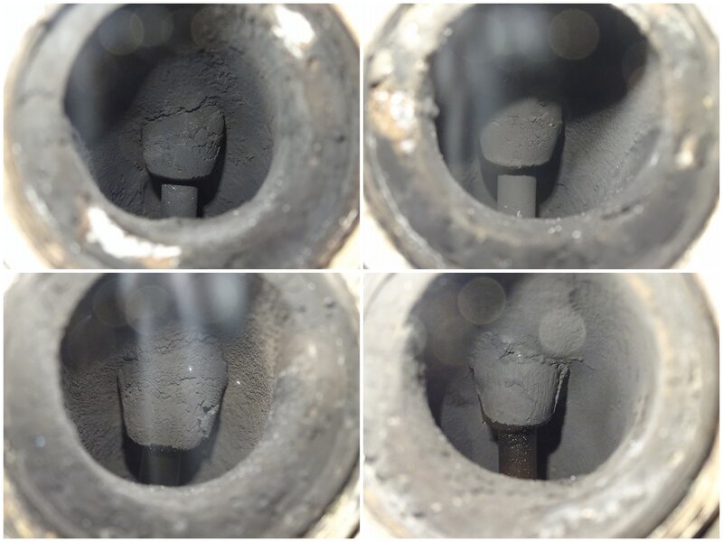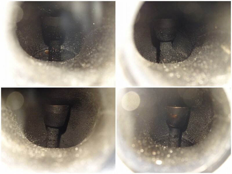 クランキング確認後取り外し。削れ、腐食有。圧縮:左から 10、9、9、10kg/cm2※粗末な計測器での測定の為、目安とお考えください。