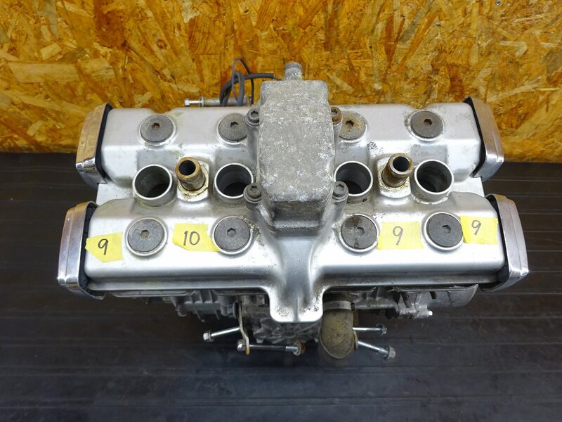 エンジン始動確認後取り外し。圧縮:左から 9、9、10、9 (kg/cm2)※粗末な計測器での測定の為、目安とお考えください。