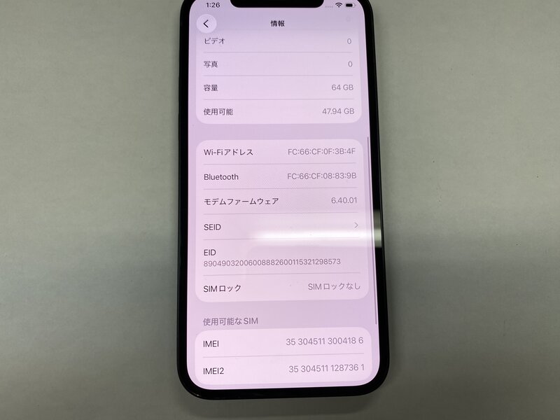 アクティベーションロック・・・OFF 充電端子不可(ワイヤレス充電可)