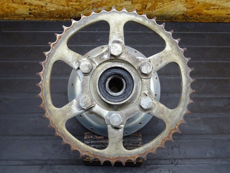 【260315】◆ TW200(2JL) リアホイールハブ スプロケット 45T 錆有