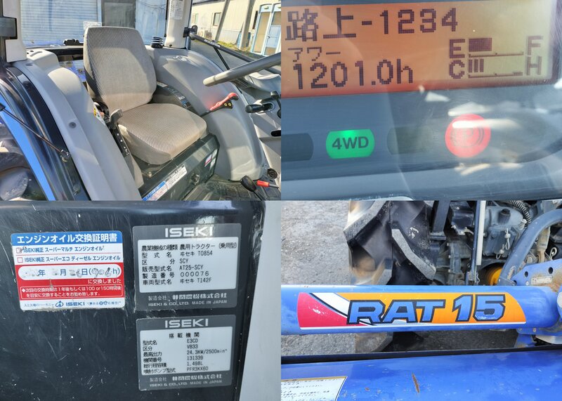 【1201時間】イセキ AT25-SCY AT25 25馬力 キャビン 作業灯付 ロータリ RAT15 150㎝ トラクター 動作確認OK 中古 滋賀県