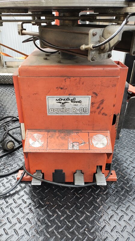 通電、エア入れ確認しました。 エアホースよりエア漏れ有。 ビードブレーカー動作せず。エア漏れ?? テーブルの回転、ツメの動作はしました。 動作確認はしましたが、使用確認は出来ておりません。 引取り歓迎。 配送については応相談。 商品サイズ:約155×100×75(cm) 確認動画:https://youtu.be/08wY53Hs8jo ・下記ご理解の上入札お願いします。 ※傷、錆、凹み、使用感、汚れ 等、現状品です。 ※動作保証はありません。OH、整備、補修前提でお考えください。 ※写真に無い気になる点はご質問ください。 ※ストア情報を確認&ご理解の上、入札お願いします。