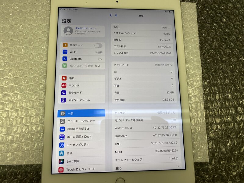 アクティベーションロック・・・OFF 画面浮き