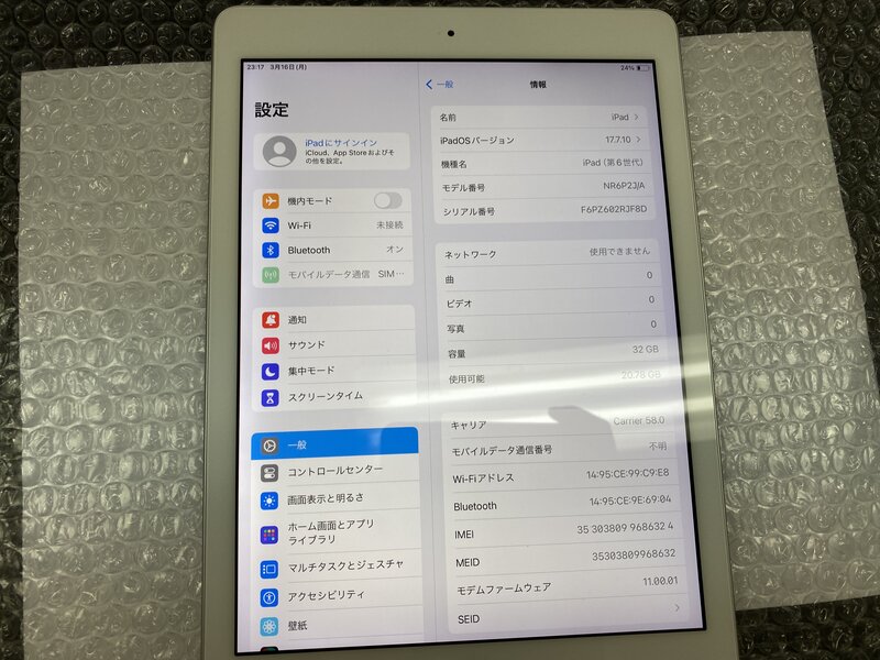 EZ674 SIMフリー iPad 第6世代 Wi-Fi+Cellular A1954 シルバー 32GB
