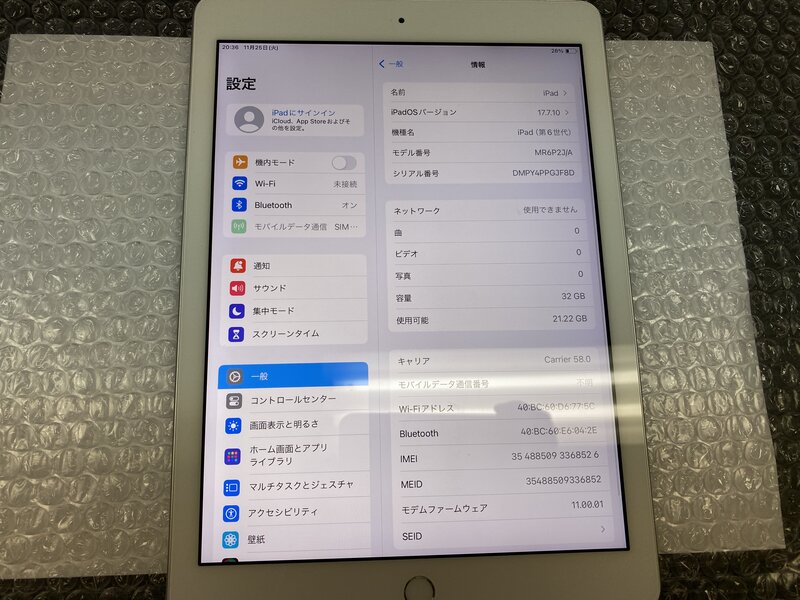 EZ731 SIMフリー iPad 第6世代 Wi-Fi+Cellular A1954 シルバー 32GB