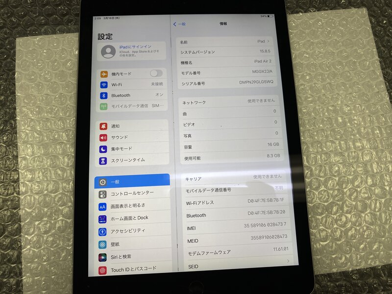 アクティベーションロック・・・OFF 本体歪み