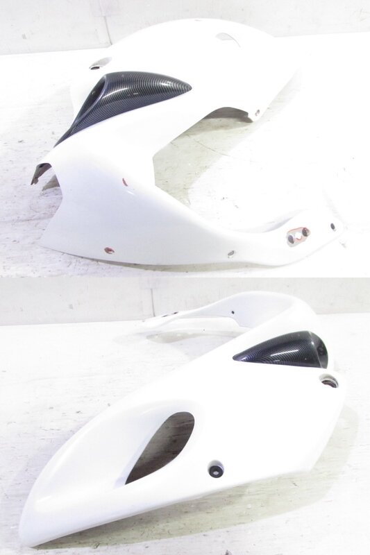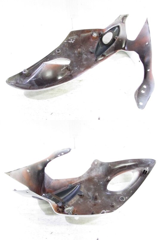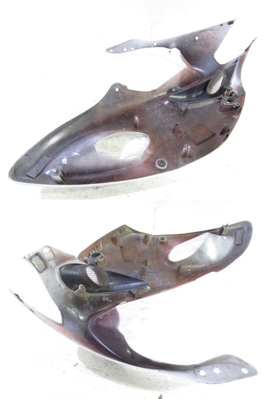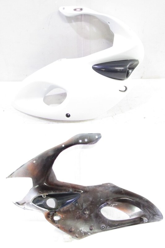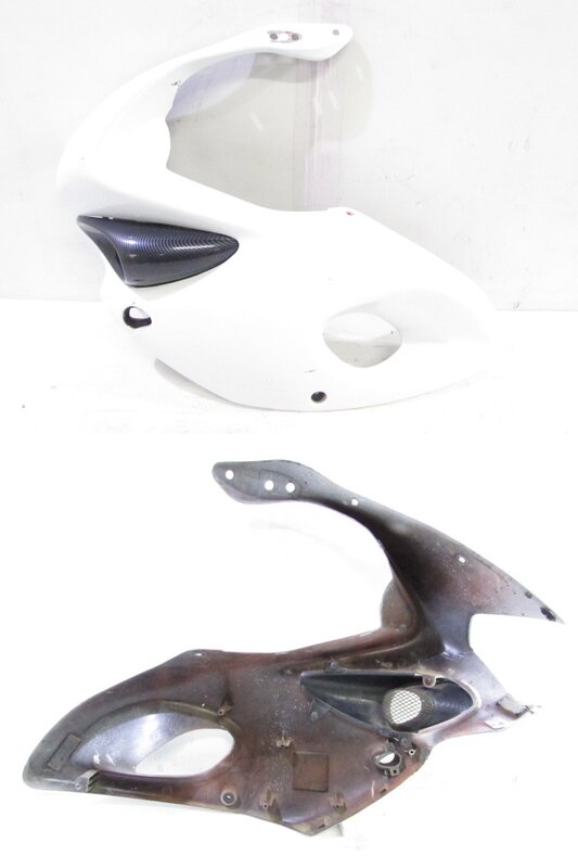 【外装】 ☆タンク・・・特に大きな破損は御座いません!タンク内は錆取をされているようですが見える範囲に錆が見られますので燃料フィルターのご使用、または洗浄補修後のご使用をお勧めいたします! 一部傷や凹み、塗装剥げが御座います! ベースにご活用ください! ☆スクリーン・・・特に気になるような破損は御座いません! ☆アッパーカウル左右・・・特に大きな破損は御座いません! 一部傷やひび割れ、欠けや補修等御座います! ☆アッパーカウル下・・・補修ベース! 割れて欠損しております! 補修ベースや素材にご活用下さい! ☆Fフェンダー・・・特に気になるような破損は御座いません! ☆シングルシートカウル・・・特に気になるような破損は御座いません! 背もたれ付となります! ☆テールカウル・・・特に気になるような破損は御座いません! ☆シート・・・特に気になるような破損は御座いません! 補修シートが貼られております!