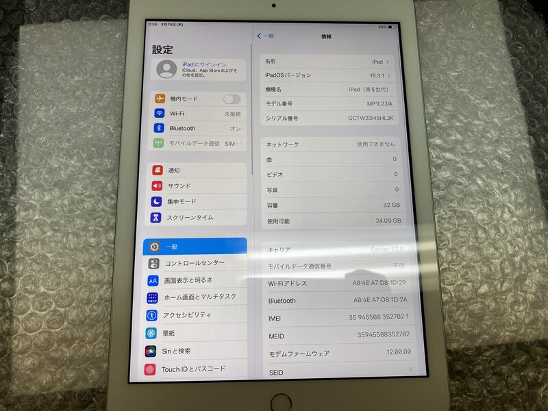 OA025 SIMフリー iPad 第5世代 Wi-Fi+Cellular A1823 シルバー 32GB