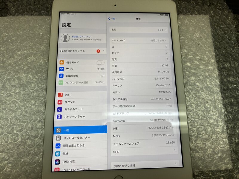 OA035 SIMフリー iPad 第5世代 Wi-Fi+Cellular A1823 シルバー 32GB