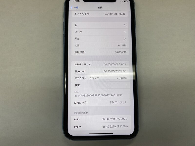 OA185 SIMフリー iPhoneXR ブルー 64GB