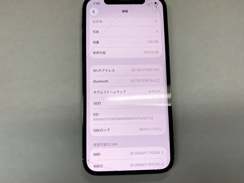 アクティベーションロック・・・OFF 画面割れ・背面割れ・タッチ不可・充電端子不可(ワイヤレス充電可)・アウトカメラレンズ割れ・FaceID不可