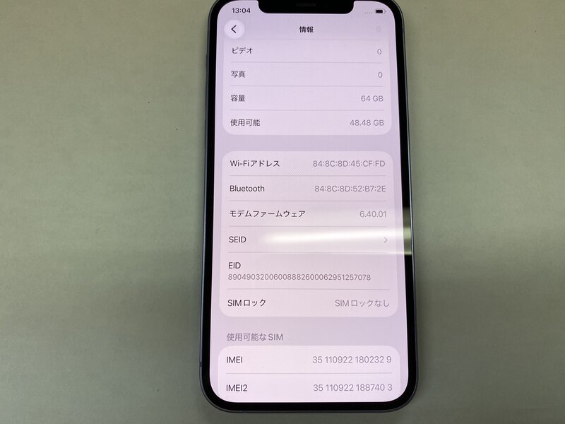 OA326 SIMフリー iPhone12 パープル 64GB
