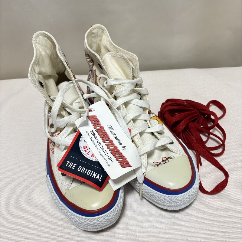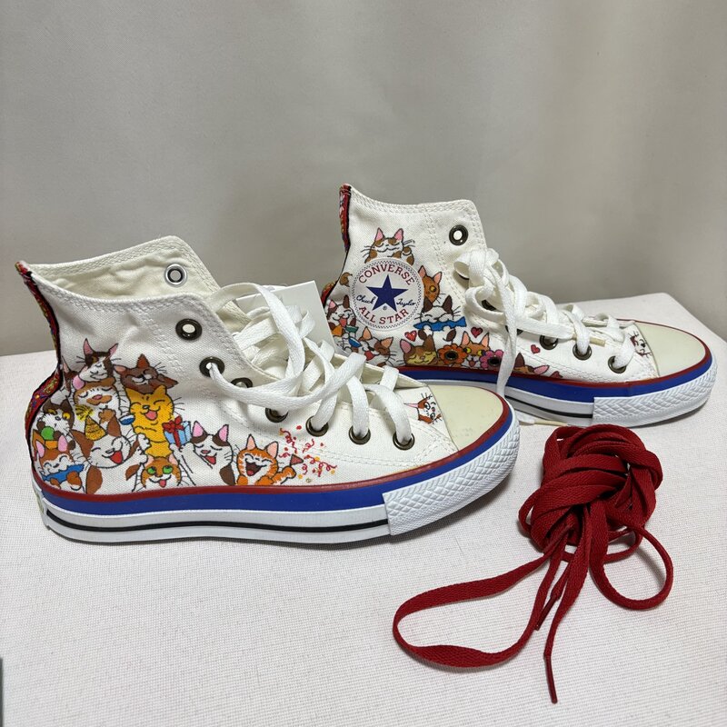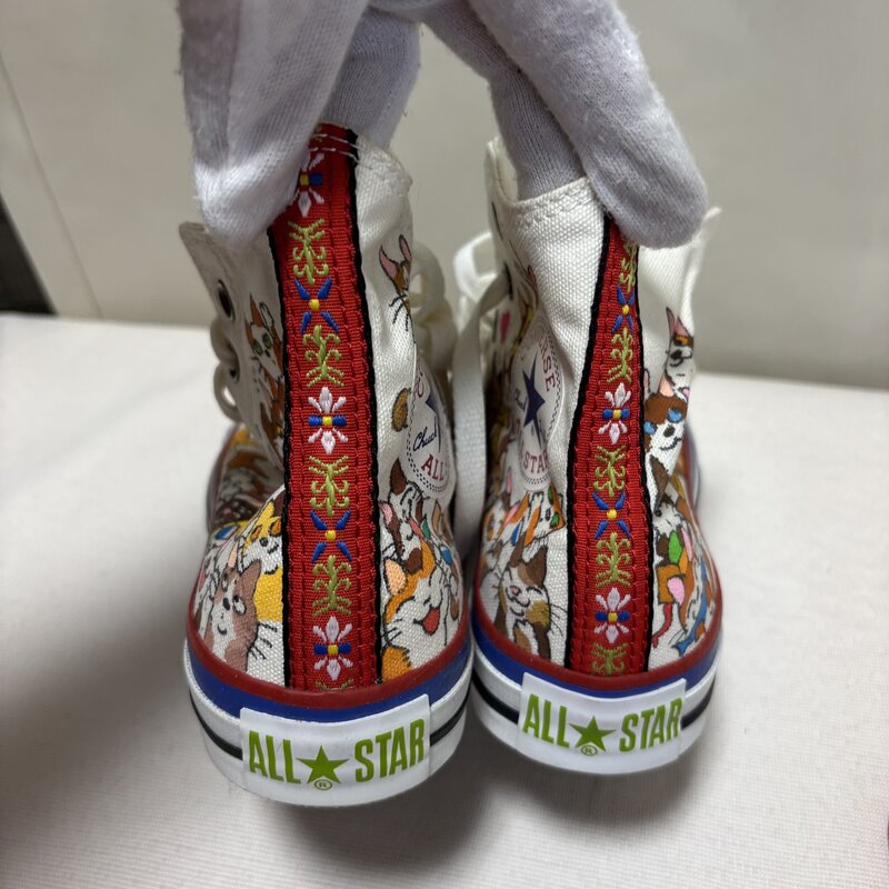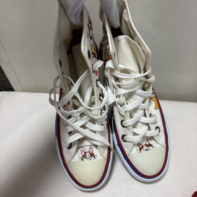 新品 タグ付 CONVERSE NEKONEKOTORATORA イラスト オンリーワン スニーカー 23.5cm オールスター ネコ ハンドペイント IW603BS05CNV_E60