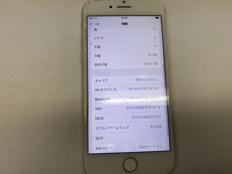アクティベーションロック・・・OFF 画面割れ・画面浮き・光漏れ