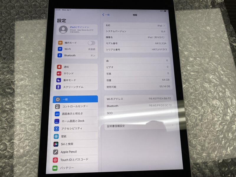 OB223 iPad 第9世代 Wi-Fiモデル A2602 シルバー 64GB
