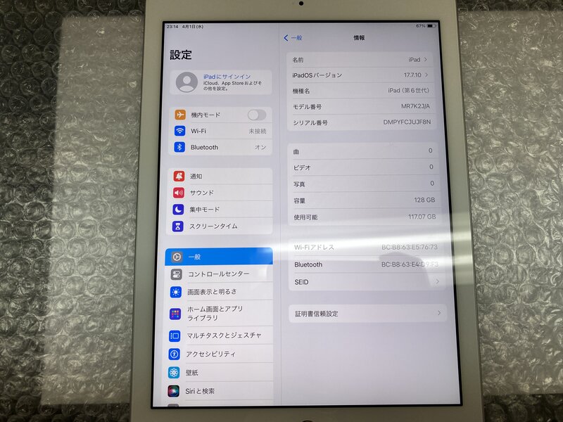 OB227 iPad 第6世代 Wi-Fiモデル A1893 シルバー 128GB