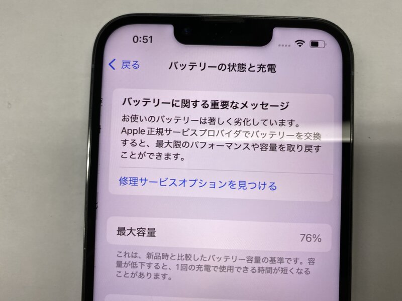 アクティベーションロック・・・OFF ディスプレイ警告・充電端子の接触不良