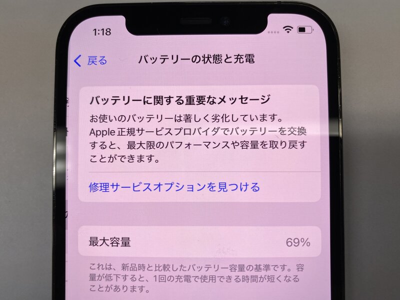 アクティベーションロック・・・OFF ディスプレイ警告・インカメラ曇り