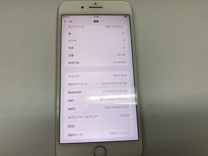 OB274 SIMフリー iPhone8Plus シルバー 64GB