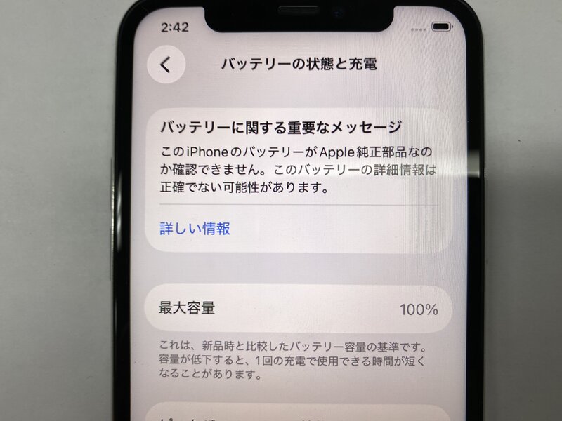 アクティベーションロック・・・OFF ディスプレイ警告・バッテリー交換品