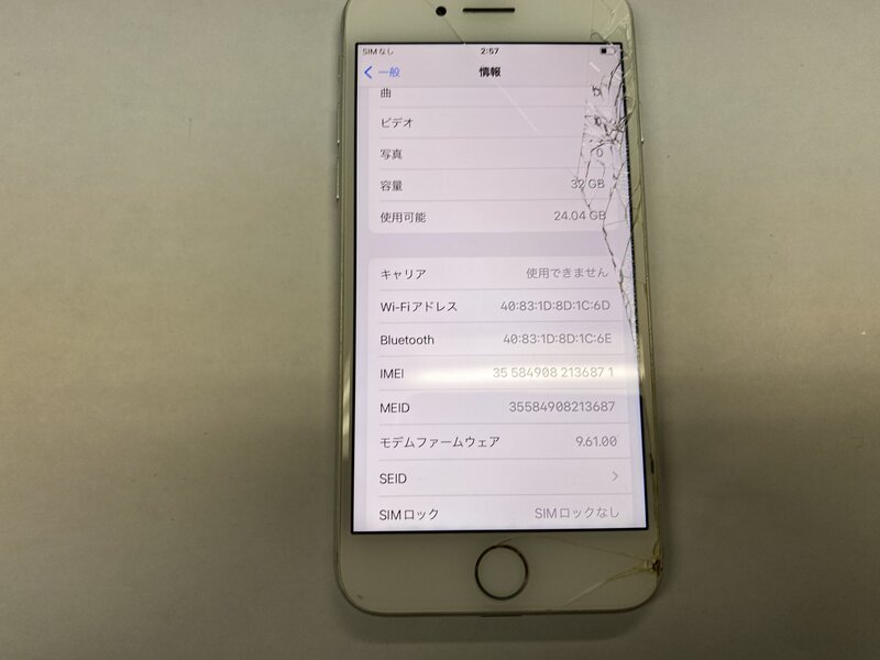 アクティベーションロック・・・OFF 画面割れ・インカメラ割れによる曇り