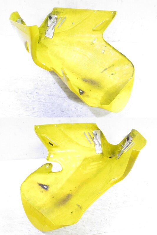 【外装】 ☆タンク・・・程度良好!! 特に気になるような破損はなく、艶も御座います! タンク内見える範囲に特に気になるような錆は見られません! 商品状態良好です! ☆スクリーン・・・程度良好!! ゼログラビティ製のスクリーンになります! 特に気になるような破損は御座いません! 比較的状態の良い商品となります! ☆アッパーカウル・・・程度良好!! 社外製のFRPレーシングカウルになります! 特に気になるような破損はなく、艶も御座います! 商品状態良好です! ☆アッパーサイドカウル・・・程度良好!! 左右共に特に気になるような破損はなく、艶も御座います! 商品状態良好です! ☆アンダーカウル・・・社外製のFRPアンダーカウルになります! 特に大きな破損はなく、艶も御座います! 一部傷やひび割れ、欠けやマフラー焼け等御座います! ☆アンダーカウル(予備品)・・・左右共に特に大きな破損はなく、艶も御座います! 右サイドに傷やひび割れなど御座います! ☆Fフェンダー・・・程度良好!! 特に気になるような破損はなく、艶も御座います! 商品状態良好です! ☆シングルシートカウル・・・程度良好!! 社外製のFRPシングルシートカウルになります! 特に気になるような破損はなく、艶も御座います! 商品状態良好です! 付属のシートはクッションカット加工されております! ☆シートカウル予備品(黄)・・・左右共に特に大きな破損はなく、艶も御座います! 一部傷やひび割れが御座います! ☆シートカウル予備品(赤)・・・左右共に特に気になるような破損はなく、艶も御座います! 一部傷が御座います! ☆Rフェンダー(予備品)・・・特に気になるような破損は御座いません! ライセンスホルダー付となります! ☆Rタイヤフェンダー・・・特に気になるような破損は御座いません! ☆シート(予備品1)・・・特に気になるような破損は御座いません! ☆シート(予備品2)・・・フチ部にいくつか破れが御座いますので補修ベースにご活用ください!