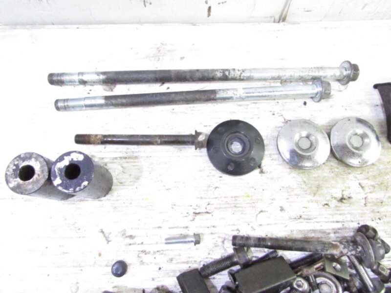 【足回り】 ☆フロントフォーク・・・目視で曲がりもなく、外観特に気になるような破損は御座いません!取り外し前に数回ボトムをさせてみましたが特に気になるようなOIL滲みは見られませんでした! ☆スイングアーム・・・目視にて曲がりもなく、外観特に気になるような破損は御座いません!シャフトなどのSETとなります! 付属のチェーンスライダーにちぎれが御座います! ☆リアサスペンション・・・程度良好!! 目視で曲がりも無く、外観特に気になるような破損は御座いません! 比較的状態の良い商品となります! ☆ホイール・・・前後共に目視で曲がりもなく、スムーズに回転しておりました! 【その他】