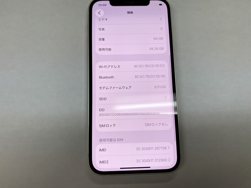 OB854 SIMフリー iPhone12 ホワイト 64GB