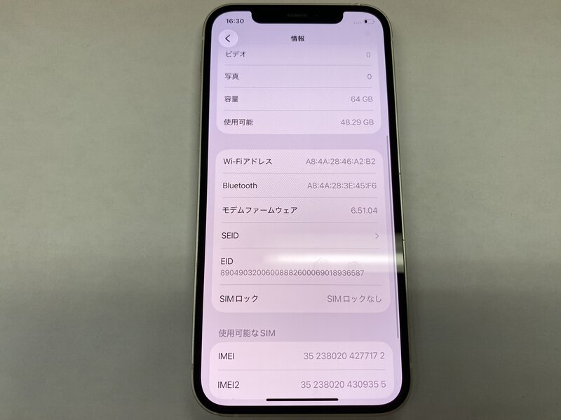 OB893 SIMフリー iPhone12 ホワイト 64GB