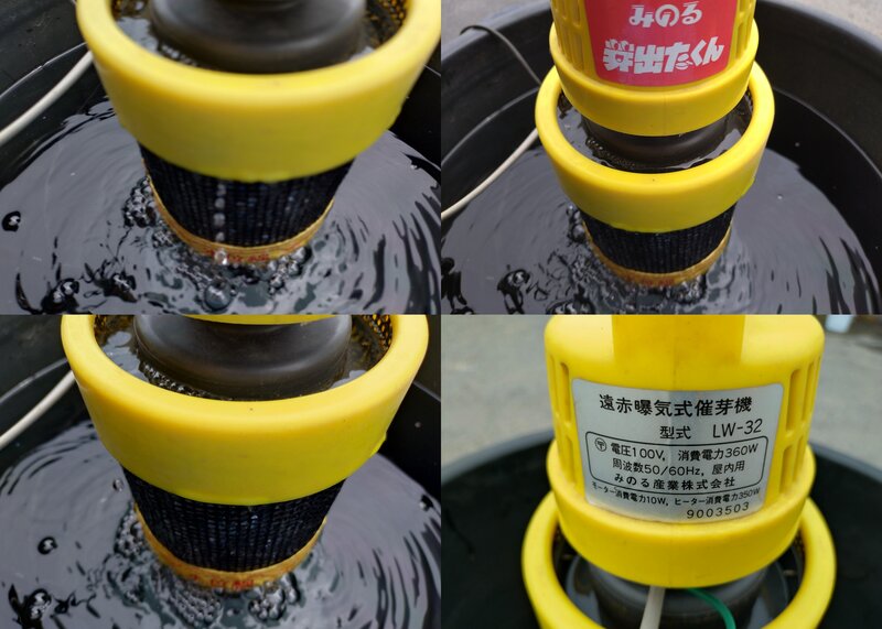 商品名:「芽出たくん 遠赤曝気式催芽機」