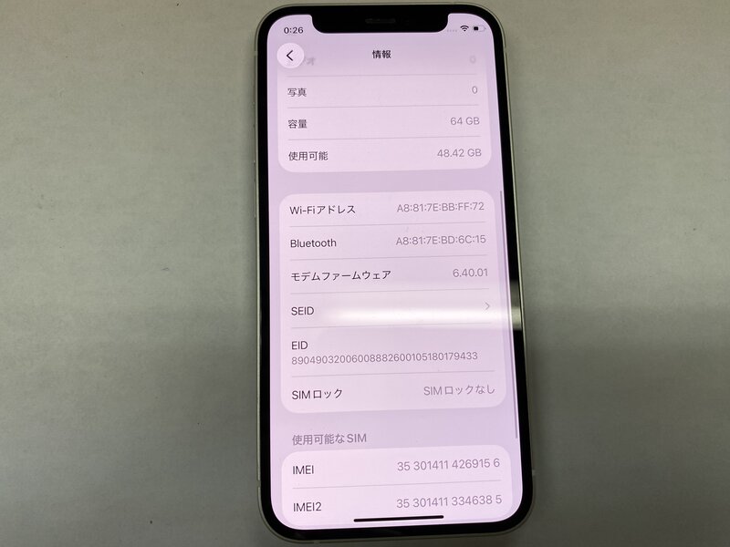 アクティベーションロック・・・OFF 充電端子不可(ワイヤレス充電可)