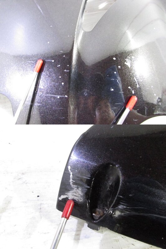 【外装】 ☆タンク・・・程度良好!! 特に気になるような破損はなく、艶も御座います! タンク内見える範囲に特に気になるような錆は見られません! 一部傷が御座いますが比較的状態の良い商品となります! ☆スクリーン・・・特に気になるような破損は御座いません! 一部傷が御座います! ☆アッパーカウル・・・特に大きな破損はなく、艶も御座います! 一部傷やひび割れ、タッチペンが御座います! ☆アンダーカウル・・・左右共に特に特に気になるような破損はなく、艶も御座います! 一部傷や熱溶け、穴あけ加工が御座います! ☆Fフェンダー・・・特に気になるような破損はなく、艶も御座います! 一部傷や塗装剥げが御座います! ☆サイドカバー・・・左右共に特に大きな破損はなく、艶も御座います! 一部傷や爪折れなど御座います! ☆テールカウル・・・特に大きな破損はなく、艶も御座います! 一部傷や欠け等御座います! ☆シート・・・レザーに破れがある箇所が御座いますので補修してご使用ください!