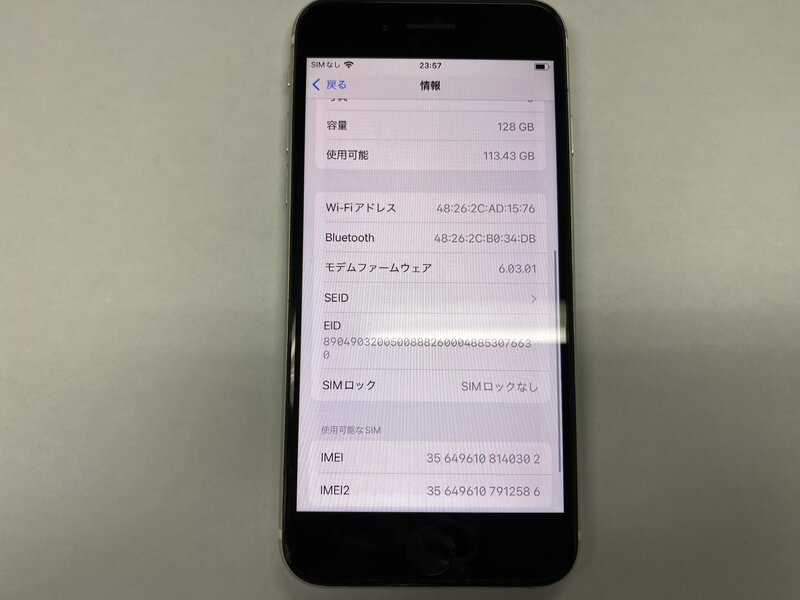 アクティベーションロック・・・OFF 画面割れ・背面割れ・表示不良(液晶網掛け)・SIMトレイ取り出し口破損(読み取り可)