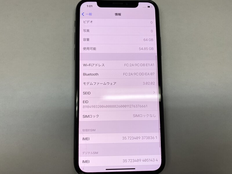アクティベーションロック・・・OFF 画面割れ・画面浮き・背面割れ・アウトカメラレンズ割れ・アウトカメラ曇り