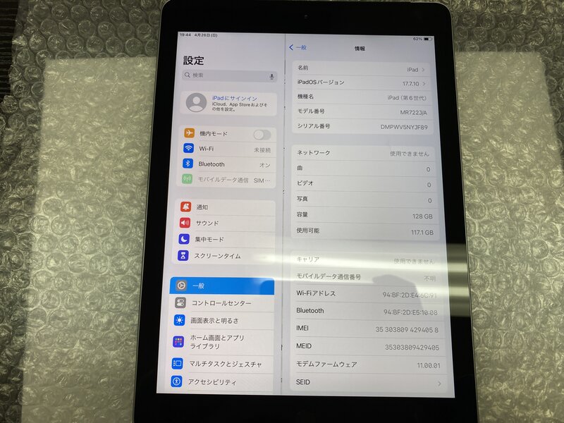 アクティベーションロック・・・OFF 本体歪み