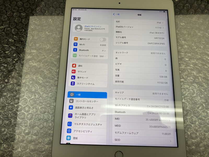 アクティベーションロック・・・OFF ライン抜け