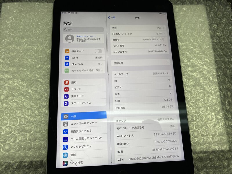 アクティベーションロック・・・OFF 画面割れ