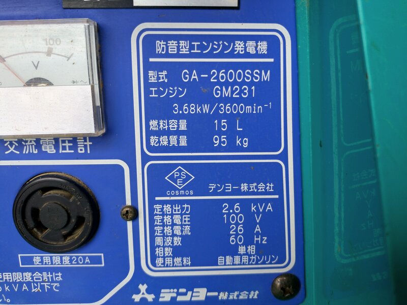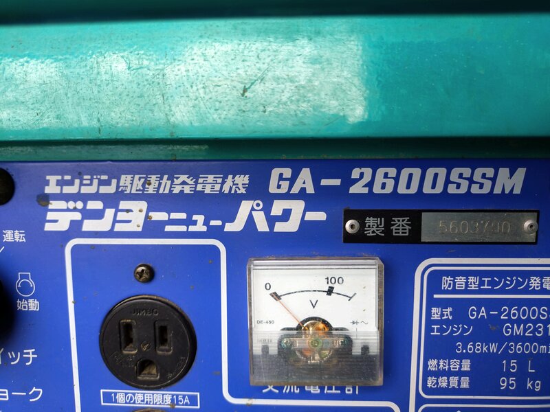 エンジン発電機 防音型 デンヨー GA-2600SSM ニューパワー ガソリン 動作確認済 直接引取 滋賀 中古